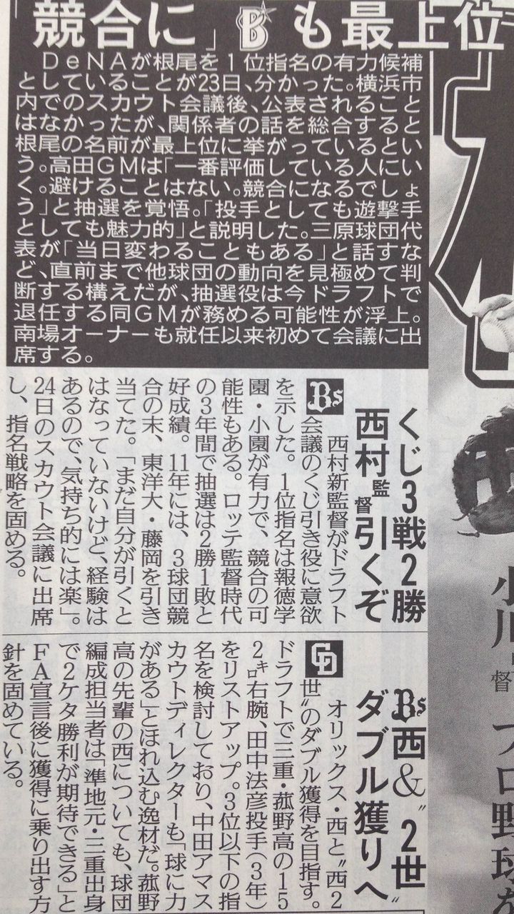 中日がオリックス西を獲得調査 FAなら大争奪戦か