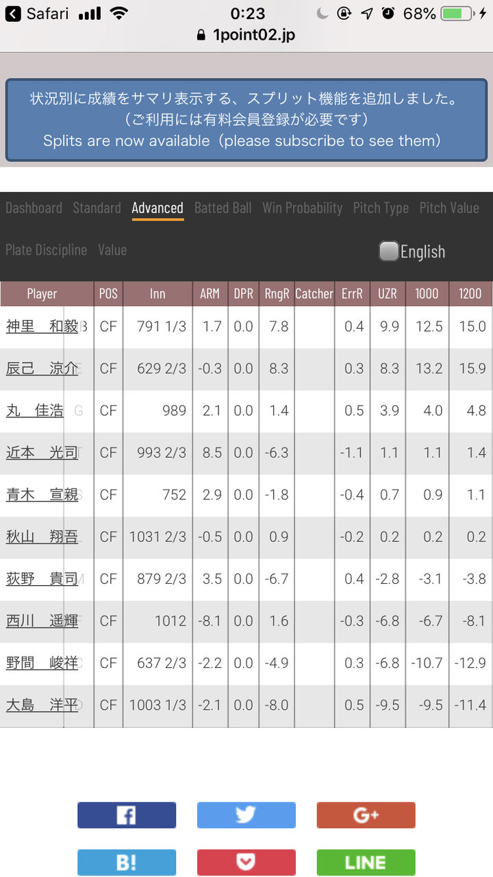 まあアレはエラーですら無かったけど実際あんなプレーするくらいだからこのUZRも納得だわ