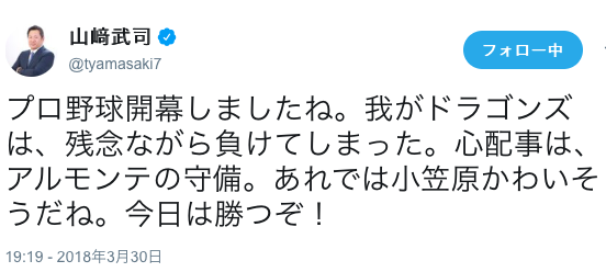 — 山﨑武司 (@tyamasaki7) 2018年3月31日