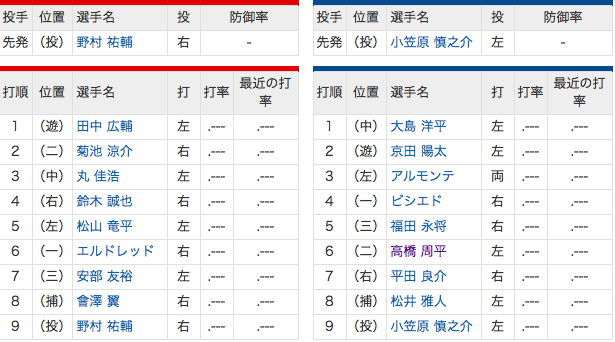 【開幕戦】中日-広島戦のスタメン発表 7番平田、8番松井雅 2018年03月30日 カテゴリ:中日ドラゴンズ mixiチェック 480: 風吹けば名無し 2018/03/30(金)17:20:37 ID:CnS 1 中 大島2 遊 京田3 左 アルモンテ4 一 ビシエド5 三 福田6 二 高橋7 右 平田8 捕 松井雅9 投 小笠原 【【開幕戦】中日-広島戦のスタメン発表 7番平田、8番松井雅】の続きを読む タグ :#ドラゴンズ#スタメン#平田良介#松井雅人