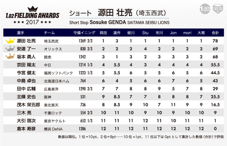 昨季は源田壮亮(西武)が受賞しました。https://t.co/4ajGChGxo8 pic.twitter.com/9LWL1duH4C