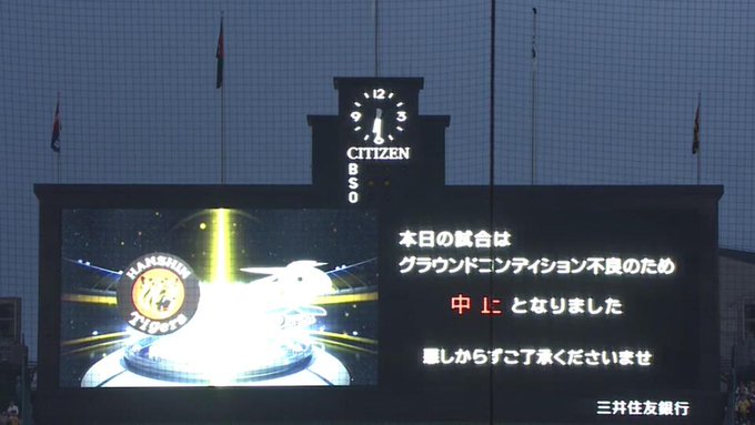 【悲報】本日の甲子園阪神-中日戦、グラウンドコンディション不良のため中止
