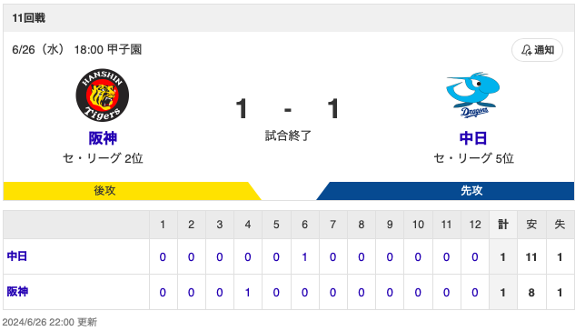 ⚾プロ野球(2024/6/26)
