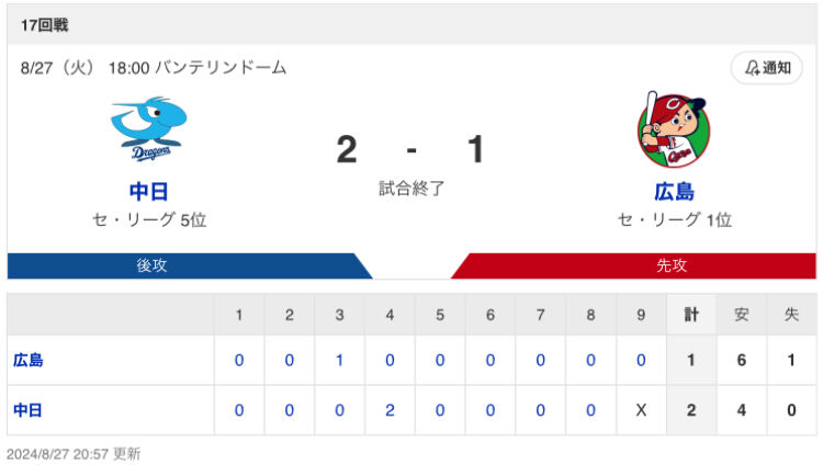— 中日ドラゴンズ公式🐨 (@DragonsOfficial) August 27, 2024