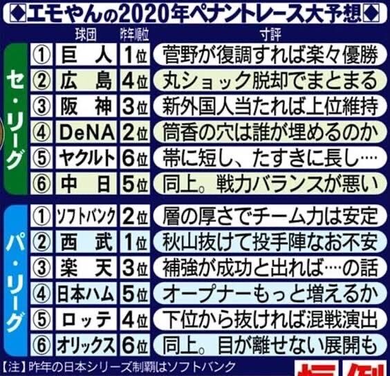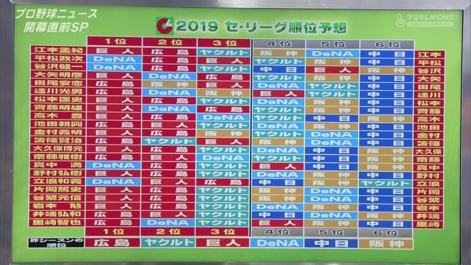 OB解説の順位予想とかいうある程度前年を参考にしながら各局に忖度するだけのやつ