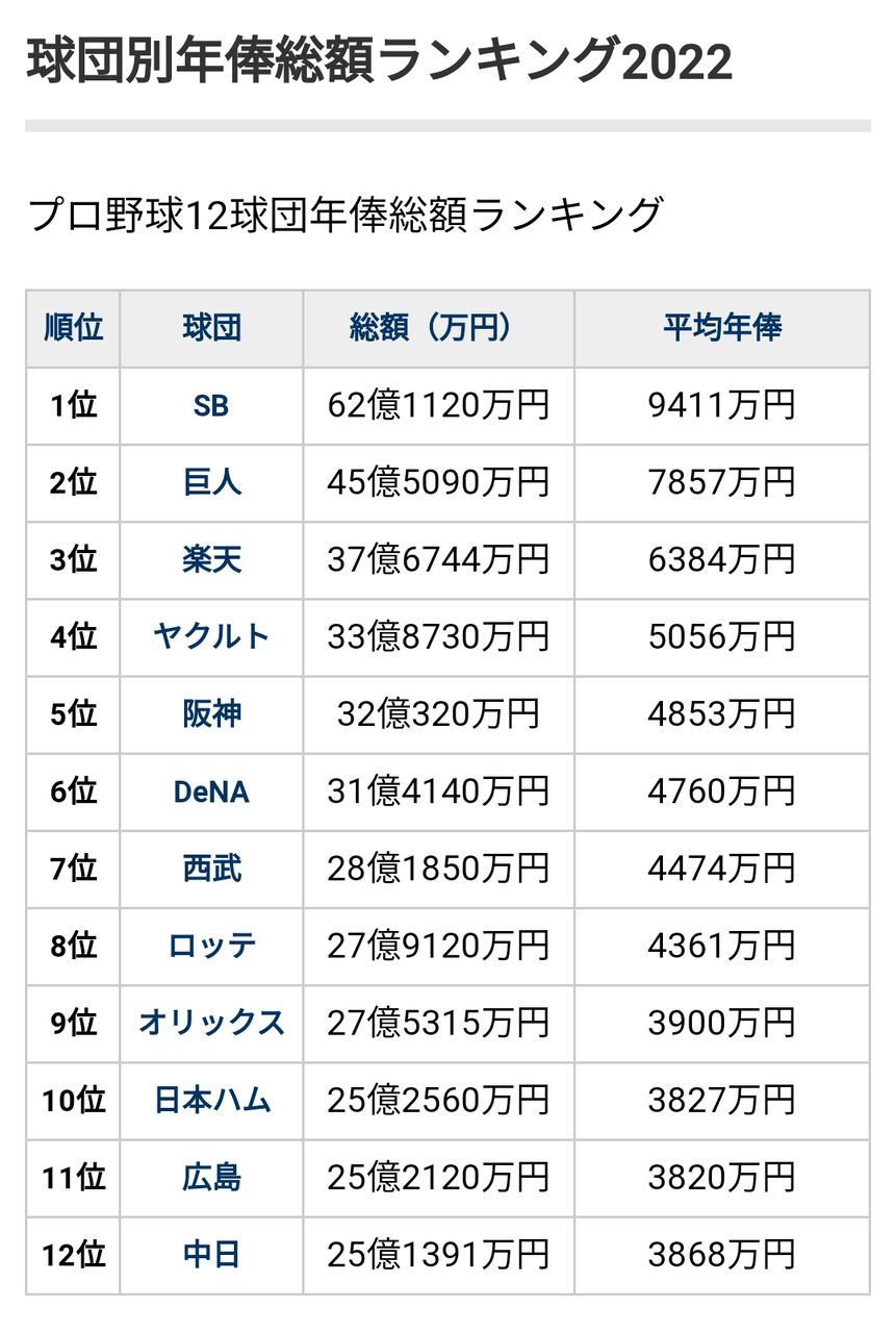 日ハムなんか親会社の規模で言えば12球団中でも上位なのにこの総年俸なんだから