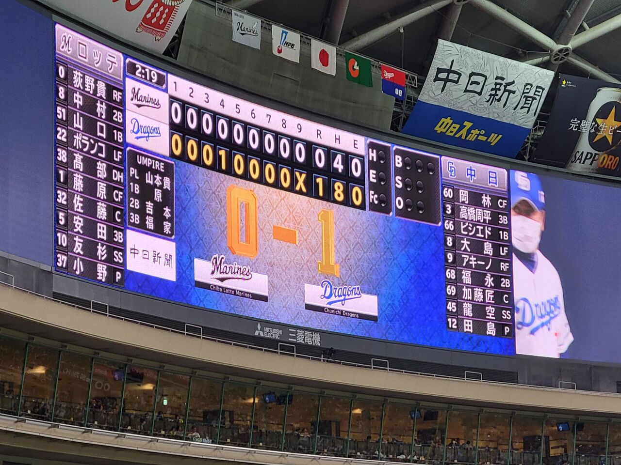 中日だと1−0