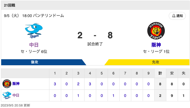 涌井は中6ができないのか阪神が強いだけなのか