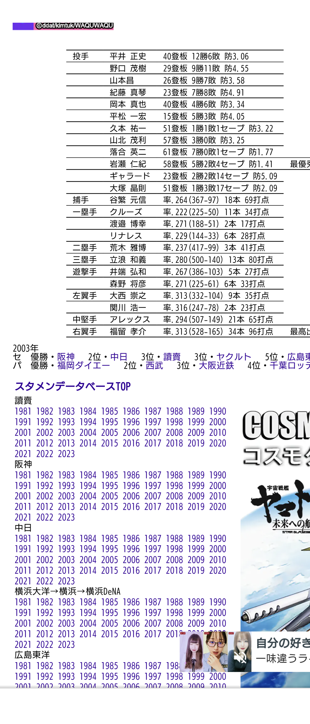 しかもここに和田谷繁がFAで移籍してきてブランコウッズ獲得するんやろ?