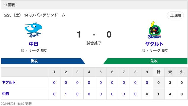 🆚中日×ヤクルト
