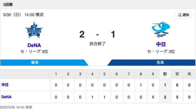ハマスタで3タテしなかっただけマジか