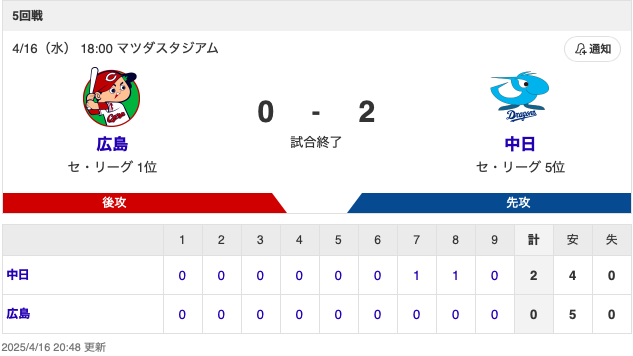 せっかく勝ち越せそうなところで明日試合ないのかなしい