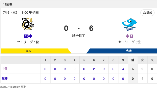 中日6連勝