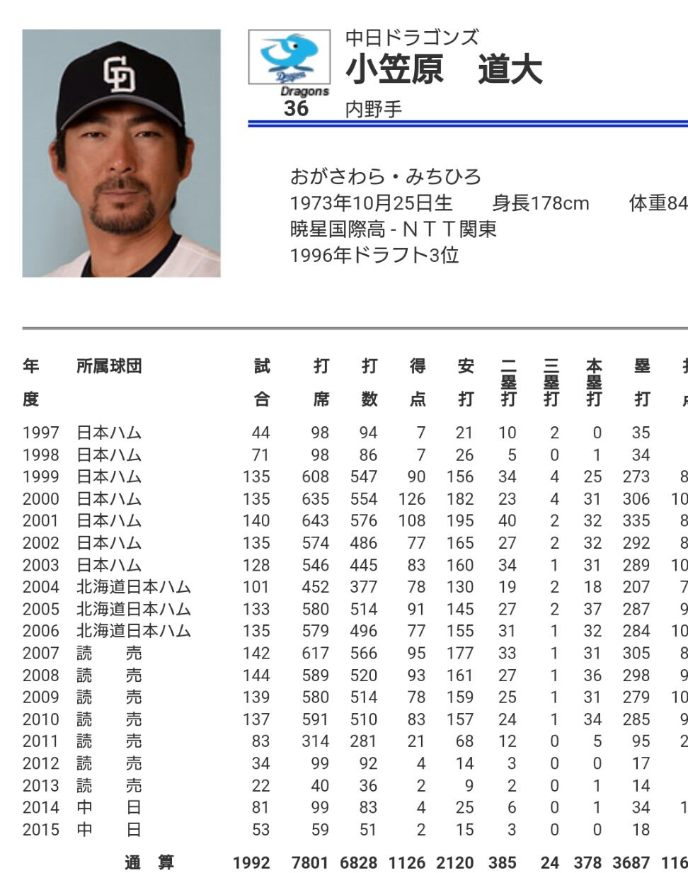 あたりまえのように3割30本打ち続けた印象だと小笠原だよな