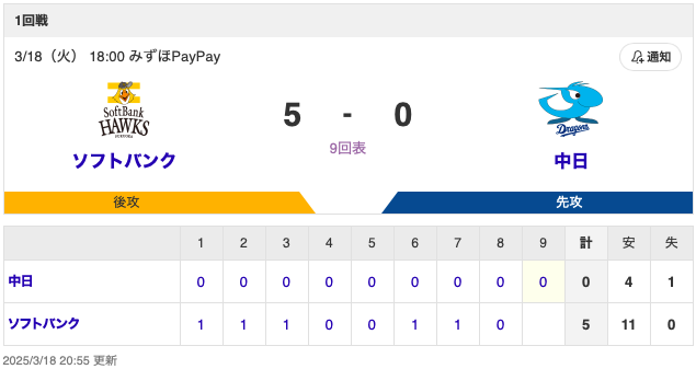 🌸ソフトバンク×中日