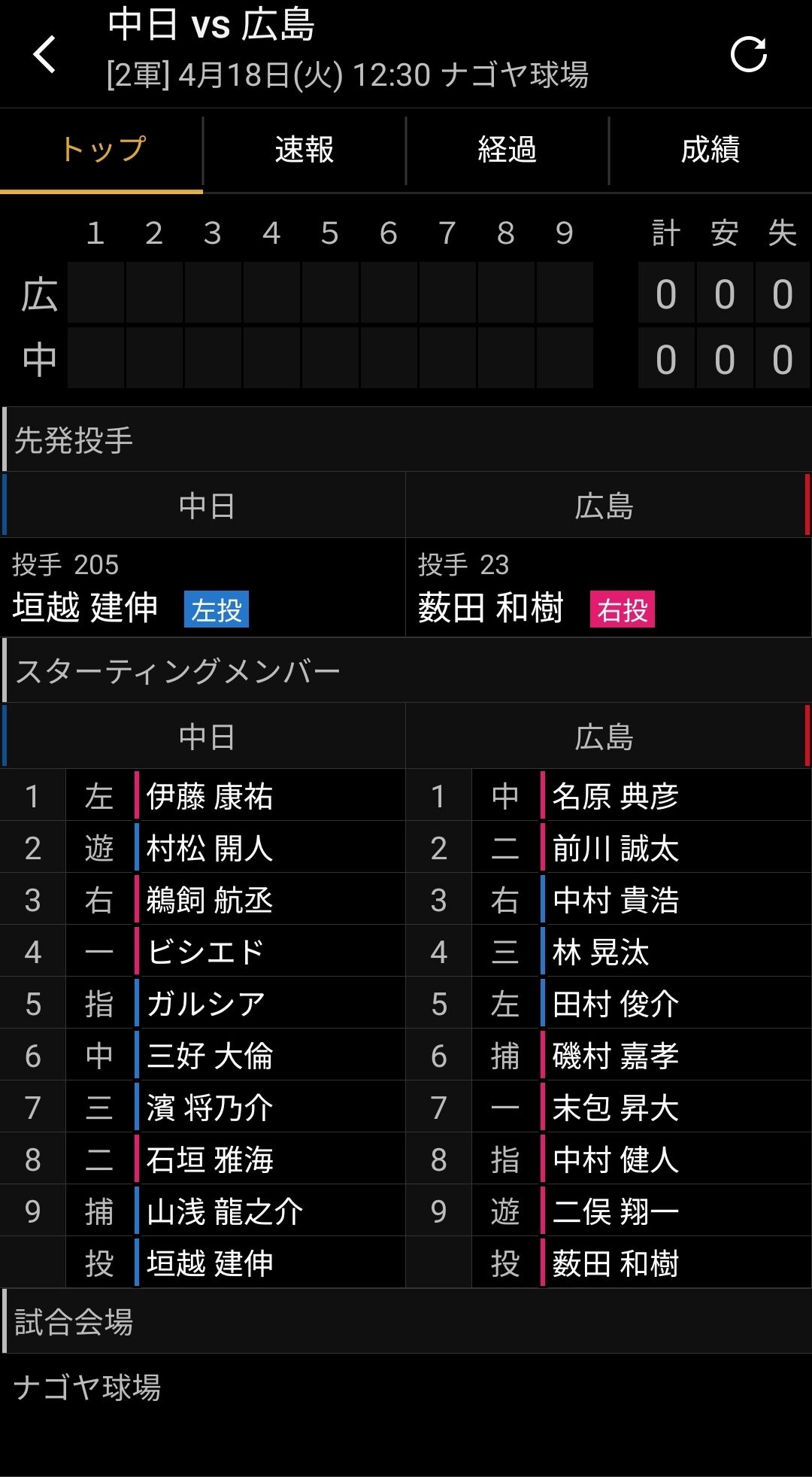 中日スタメン