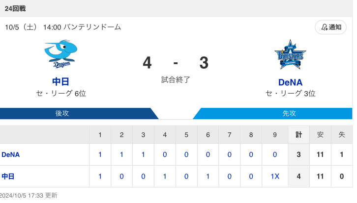 ⚾プロ野球(2024/10/5)