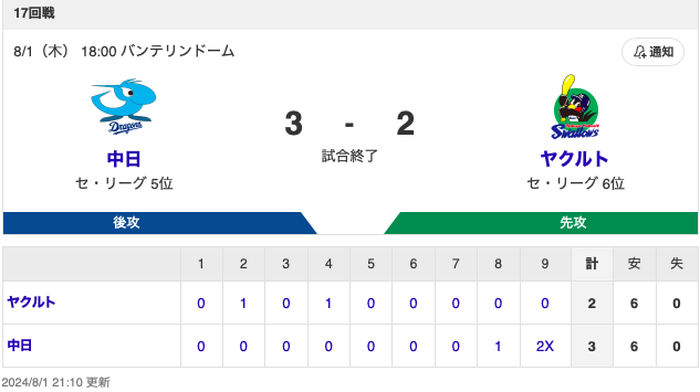 ⚾プロ野球(2024/8/1)
