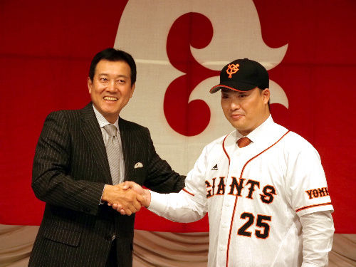 ジャイアンツ球場をスーツ姿で訪れあいさつ