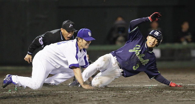 二塁走者の西浦が本塁に突入したクロスプレーで杉本球審はセーフをジャッジした。