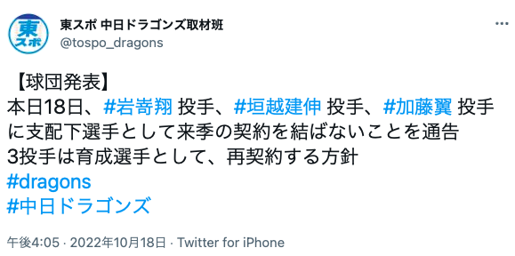 — 東スポ 中日ドラゴンズ取材班 (@tospo_dragons) November 10, 2022