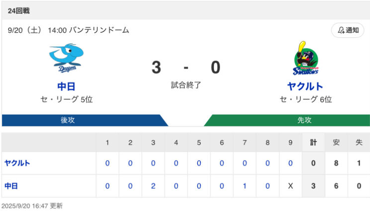 — ⚾️DAZNベースボール (@DAZNJPNBaseball) September 20, 2025