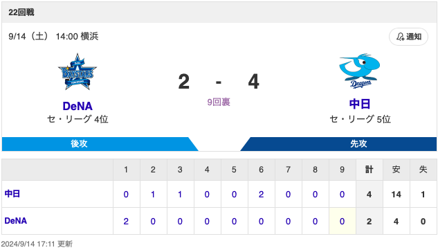 ⚾プロ野球(2024/9/14)